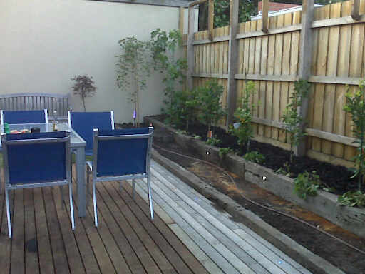 Back Yard Posted on January 4, 2008 by David Eedle Deck extension all done, low voltage lighting in and working, plus fabulous fig tree and mulberry in the back corner (fig is BIG, loads of fun moving and planting). Share this: Click to share on X (Opens in new window) X Click to share on Facebook (Opens in new window) Facebook Click to share on LinkedIn (Opens in new window) LinkedIn Click to email a link to a friend (Opens in new window) Email Click to print (Opens in new window) Print Like Loading... Related
