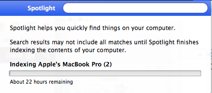 In fact, the hours remaining at one point said “About 11 MONTHS” remaining. Not encouraging. I know there’s a way to force Spotlight to reindex your Mac: